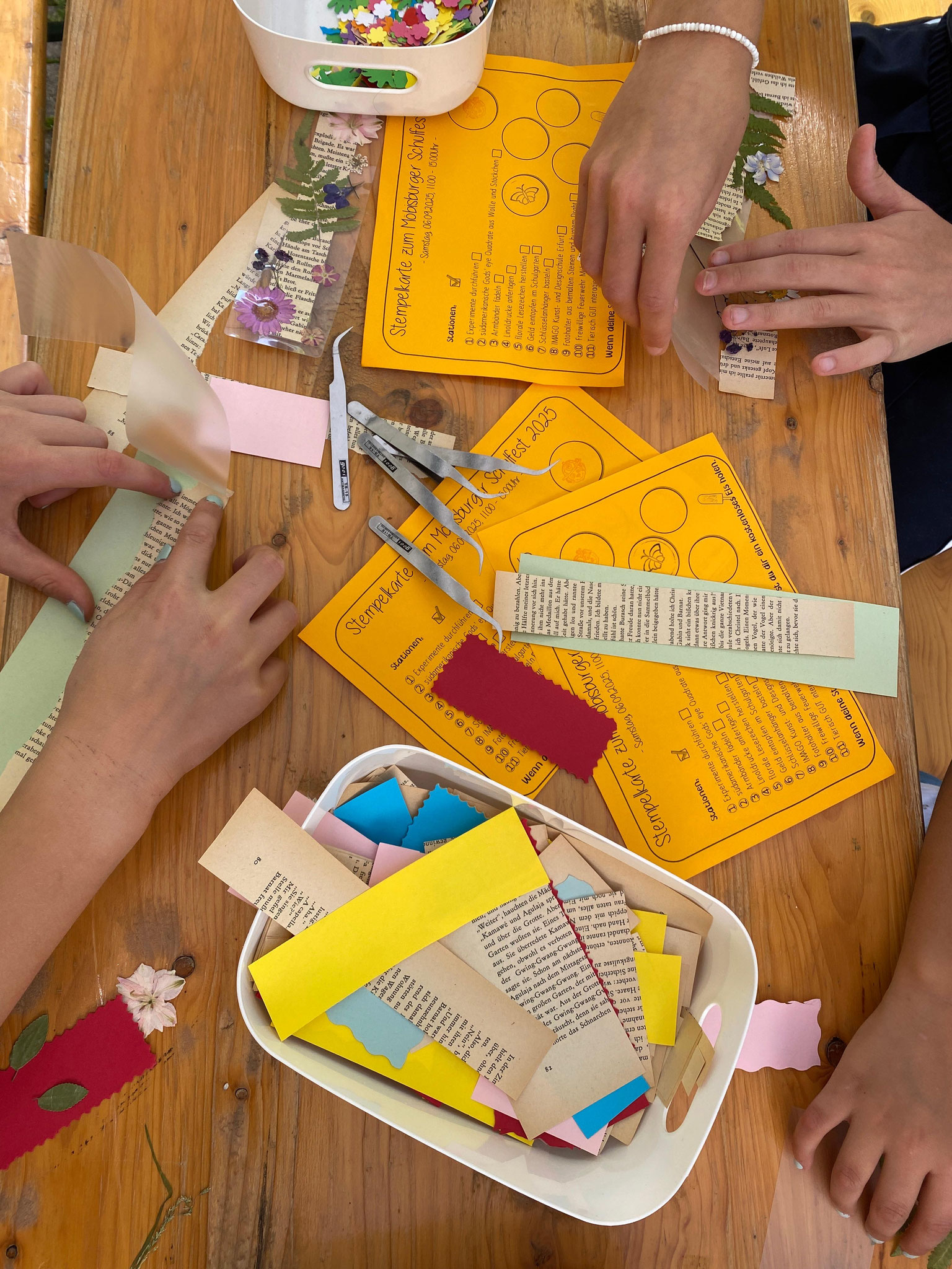 Jedes Kind überlegte sich ein eigenes Motto und gestaltete zur Erinnerung eine Motto-Karte.