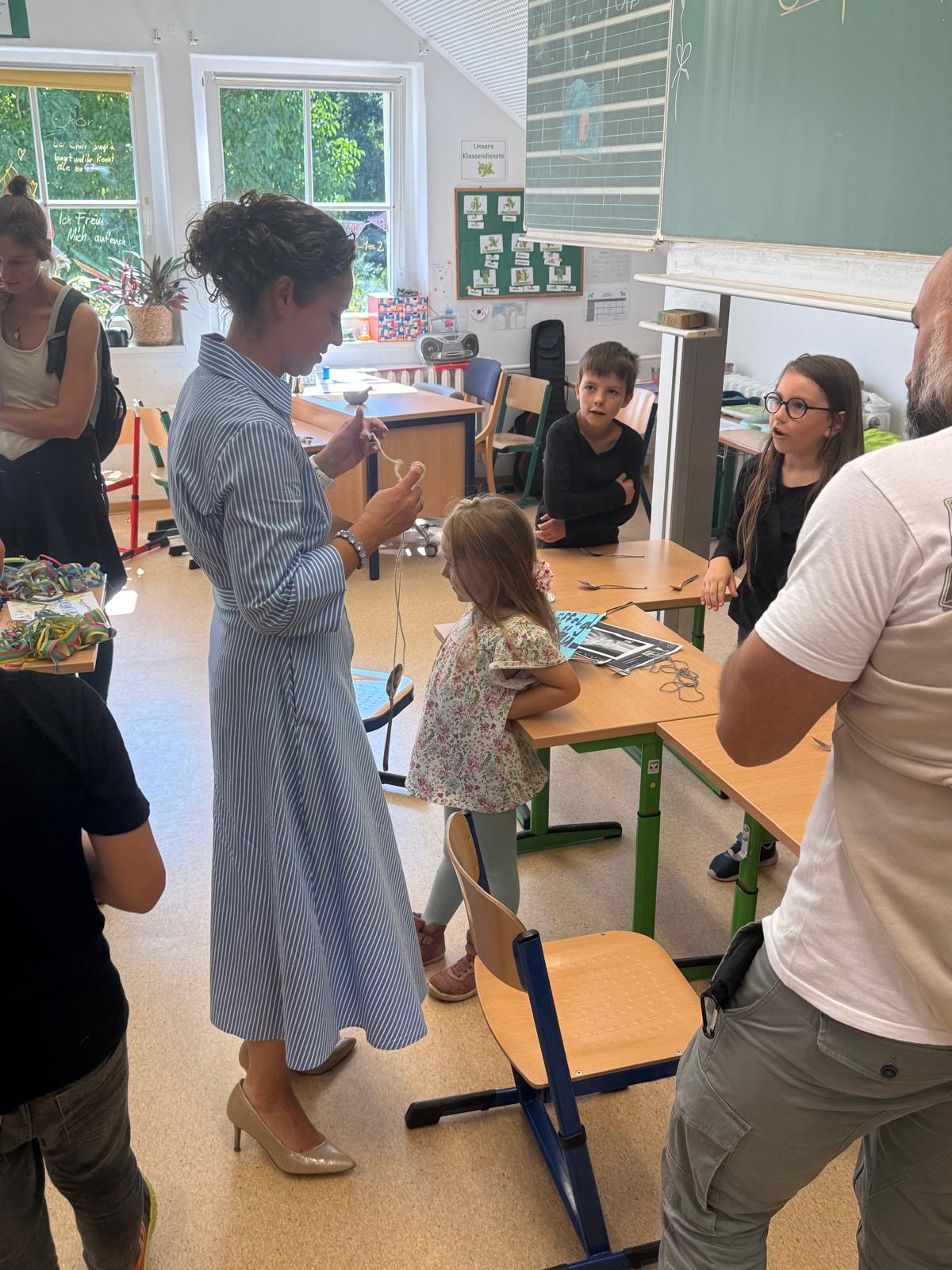 Zu den bereits 2023 gepflanzten Bäumen gesellen sich genau ein Jahr später weitere Winterlinden und Traubeneichen, die gemeinsam mit Kindern der vierten Klassen, der Schulleiterin Stefanie Stalzer und dem Ortsteilbürgermeister Matthias Göpel ihren sicheren Weg in die Erde finden. Der jährlich wachsende Waldabschnitt entwickelt sich für die Schule zu einem Projekt von Kindern für Kinder. Diejenigen, die die Grundschule verlassen, hinterlassen den zukünftigen Schülern einen Lebensraum mit persönlicher Note. Ein echtes Praxisbeispiel, welches zum Untersuchen, Forschen und Beobachten im Sachkundeunterricht einlädt, mit direktem Bezug zur Schule - ein Beitrag zum Klima- und Umweltschutz, welcher eine große Bedeutung für die Schulgemeinschaft einnimmt.